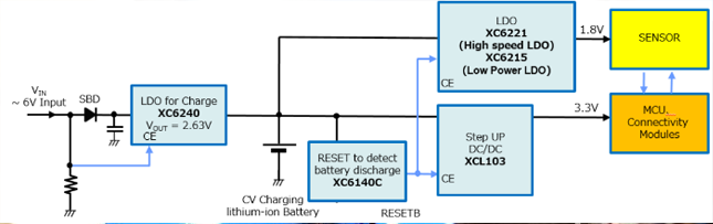 图1.使用XC6240和XC6140的物联网设备电源解决方案